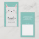Cute and modern mummy calling card with your name, child's name and contact information. Illustration of a cute white kitty cat. The texts are on her belly and also on the back of the card. All texts are easily editable online. This card is very useful to give out to other parents, teachers, school events, neighbours, babysitters etc. It has your personal contact information along with your child's name so people can easily reach out to you for emergency reasons or for setting up a play date!