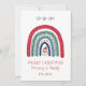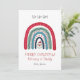 A cute whimsical Christmas card for mummy and daddy from baby, featuring Santa Claus and Christmas rainbow. Add your baby's name. Solid red on the back of the card.