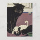 An Art Deco vintage illustration of a mother cat and her two kittens. The two are jumping on her tail.