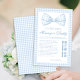 Sophisticated classic "Guess who? Mummy or Daddy" game designed for a baby boy shower, adorned with a charming gingham pattern bow tie. Engage your guests with this delightful game, perfect for adding fun and excitement to your celebration while creating cherished memories.
