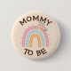 Pink Rainbow girl's baby shower button that says, Mummy to be