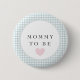 This soft blue gingham mummy to be baby shower button has a cute little pink heart.