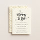 Mummy To Bee, baby shower invitation. Pretty black script with cute watercolor honey bee accents. Back of card features golden honeycomb pattern on pastel honey yellow.