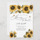 Rustic bee baby shower invitation template card featuring watercolor illustration of yellow sunflowers and baby's breath with bumblebees. Perfect for a summer baby shower. The text says "let's shower the Mummy to bee."