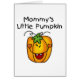 Mummy's Little Pumpkin T-shirts, bodysuits, mugs, cards, stickers, trick or treat Halloween tote bags, and more with a smiling jack o lantern design and kid style text.