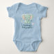 "This adorable baby bodysuit features a playful baby elephant illustration in soft pastel colours like light pink and mint green, with the uplifting text 'Mummy’s Little Sunshine' underneath. Perfect for your little one, this bodysuit is designed with comfort and style in mind, making it an ideal gift for new parents. The cute and cheerful design is ideal for baby showers, birthdays, or just everyday wear. Lightweight and soft fabric keeps your baby comfortable while adding a touch of whimsy to their wardrobe."