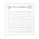 A cute floral to-do checklist for Mum with hand drawn flowers! This handy checklist notepad features a list of ten check boxes with lines to write on, forty easy tear-away pages, and hard cardboard backing for sturdy writing. Custom notebooks are perfect for the home or office.