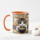 An adorable munchkin cat eating ramen using a pair of chopsticks in a Japanese ramen restaurant. This breed of cat is frequently rank among the top 3 of the cutest cats in the world. Hope you like it too.