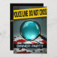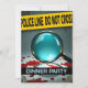 Uncover the mystery in style with this modern Murder Mystery Party Invitation, featuring a magnifying glass as the central visual motif. It rests above a floor splattered with blood droplets and has police tape above it and a custom text template below it. Set against a muted grey background, this design evokes the mood of a revenge-filled case begging to be solved.