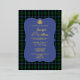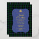 Classic blue and green Scottish clan Murray plaid and foil wedding invitation, with a decorative blue text area. A foil Celtic knot heart decorates the top of the text area. Personalise the text for your highland wedding.