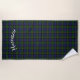 Stylish beach towel done in the classic green and blue Scottish clan Murray tartan plaid pattern. Personalise the large arched white text to suit your needs.