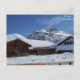 Chalets in the car free village of Mürren, Switzerland with the majestic alps in the background Postcard. Perfect postcard to send greetings to your loved ones from beautiful Mürren, Switzerland. Or, bring back special holiday memories. Contact me at marmottlygiftshop@gmail.com if you would like to have this design on another product.