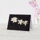 . Multiple lilies and vases on a black background are used to create this striking still-life card.