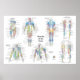 Human superficial and deep muscle anatomy views of the anterior, posterior, legs and arms 24 X 36. Over 100 labeled superficial and deep muscles of the human body. Color coded for easy identification.