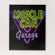 Muscle Car Garage Neon Sign Blue Green Jigsaw Puzzle