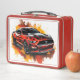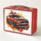 This lunch box is shown with a fancy muscle car art print.