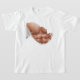 100% cotton so perfect for summer, It is a nicely designed t-shirt, the fabric is soft and the seams finished well, the body of the t shirt has no side seams. I bought a medium size for my two grandsons, aged 9 and 8 it will be slightly big on them but I would rather that than too small