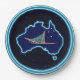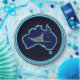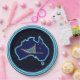 A dog sled with a teal sled bag and the Southern Cross superimposed on a blue map of Australia. All on a starry background. You may customise by adding a bit of text on the sled bag.