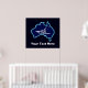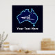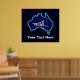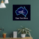 A simple white silhouette of a dog sled and the Southern Cross superimposed on a blue map of Australia. All on a starfield background. Who would have thunk it? Mushing upside down in Oz. Dog sledding is quite popular in Australia. At Mount Hotham in Victoria there is a big race every year.