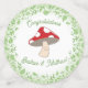 This adorable mushroom baby shower design features a cute cartoon baby mushroom! Perfect for a woodland or forest adventure loving new Mum!