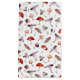 Whimsical pattern of watercolor illustration of various mushrooms.