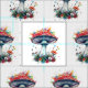 Mushroom and flowers, woodland , colourful splash art , custom background colour.
