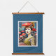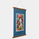 Wood topped wall tapestry features "Mushroom Geisha" a beautiful and surreal fantasy digital art painting of a stunning Asian woman encased in a red capped mushroom landscape.
