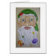 Earthy gnome painted on a piece of pine wood. This gnarly character spends so much time in the underbrush that mushrooms are caught in his beard!
