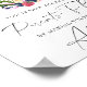 My thoughts on this product was excellent. Well printed in a gloss finishing and just the size l ordered. It arrived in good condition and am overall satisfied with the product. The printing turned out great. I was quite surprised with the finishing touch to the poster. The semi gloss was just right and a perfect size to display at the wedding.