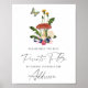Gorgeous wild mushroom themed invitation with watercolor dandelions wildflowers and berries, butterfly, fly agarics mushrooms.