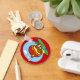 A bright and colourful cartoon mushroom house. The background colour can be changed.
