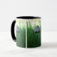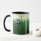 Wild mushroom growing amongst the grass. Repeated 3 times around the mug.