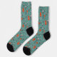 These socks feature a different assortment of hand-drawn mushrooms against a sea foam green background. Perfect for men or women.