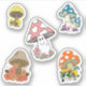 Set of five unique mushroom/toadstool themed stickers. Hand drawn art, different styles.