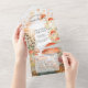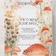 Charming watercolor toadstool mushroom enchanted forest Wedding All in One Invitations in colours of creams, muted orange and green. These invitations include the wedding info, and RSVP, meal choices postcard that your guests tear off and and send. Envelopes are not needed. Great for a woodland, outdoor venue, fairytale or boho feel wedding!