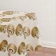 Tablecloth features an original marker illustration of a mushroom pattern on a tan background.