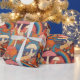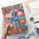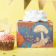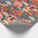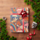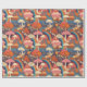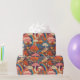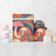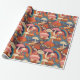 Orange, brown, pink, and blue retro-style mushroom and rainbow wrapping paper