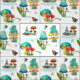 Watercolor toadstools and leap frogs playing with butterflies, dragonflies and ladybugs near the ponds. All fabric can be resized and the background colour can be changed by contacting the artist.