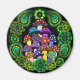 A magnet with colourful psychedelic mushrooms surrounded by green paisley and green mandalas.