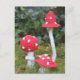 An adorable collection of crocheted mushrooms photographed in the yard.
