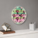 Mushroom lovers wall clock home interior. Modern design with mushrooms and stripes.