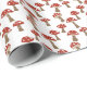 Cheerful red and white mushrooms dance across a white background for a festive but earthy effect.
