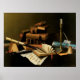 Music and Literature (1878) by William Harnett is a vintage Victorian fine art still life realist painting featuring a beautiful scene that any musician would enjoy. A stack of books for reading, sheet music, woodwind musical instruments, a candlestick with candle and a feather quill pen in an inkwell.