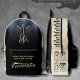Amplify your musical journey with a unique backpack that that hits all the right notes. Designed for the guitarist, the front features an artistic graphic of a treble clef that transforms into three guitar headstocks under shining stage lights, a perfect visual for the aspiring musician. Below, the customisable phrase "WHERE THE SIX STRINGS LEAD, I WILL FOLLOW" on the pocket captures the soul of the artist. The side panel reveals its most unique feature: a line of intricate guitar neck silhouettes and four essential guitar chords (Am, C, D, F). This black and tan backpack is a perfect blend of style and function for those who live and breathe music.