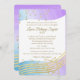 Shades of youthful purples and blue watercolor design with golden music notes and Star of David, Bat Mitzvah inviation. Personalise text as preferred.