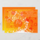 A warm and lively invitation to a concert, recital or birthday. The invitation has sunny yellow, orange and red abstract circles and notes with a cascade of white musical notes.