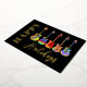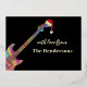 Music themed cool colourful Christmas guitar happy holidays black and gold festive greeting card. Let’s rock and roll this festive season with these fun, colourful jazzy, guitars wearing Santa hats. Acoustic guitars, electric guitars and semi acoustic guitars psychedelic colourful designs to bring holiday cheer to your guitarist musician friends and budding rock stars. This funny musical instrument Happy Holidays card can be easily personalised using the templates. Original artwork by artist Catherine Sweetman