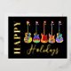Music Christmas Guitar Happy Holidays Black Gold Foil Holiday Card