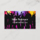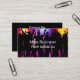 Cool modern Music DJ business cards designed with a crowd of people partying in silhouette in the background of this bold colourful custom business card.