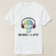 This is an uplifiting T-shirt about the importance of music in our lives. Using the skull (symbol of death) in a fun and lively design.